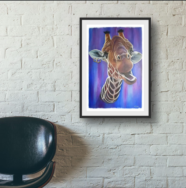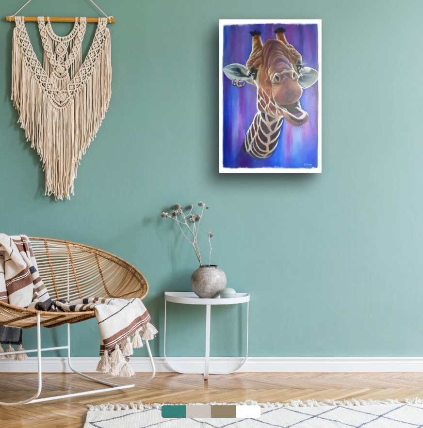 Meet Geraldine, the giraffe who’s not shy about making eye contact. She’s front and centre in this high-quality art print of my original acrylic painting—ready to add a bit of humour, warmth and character to your wall.
